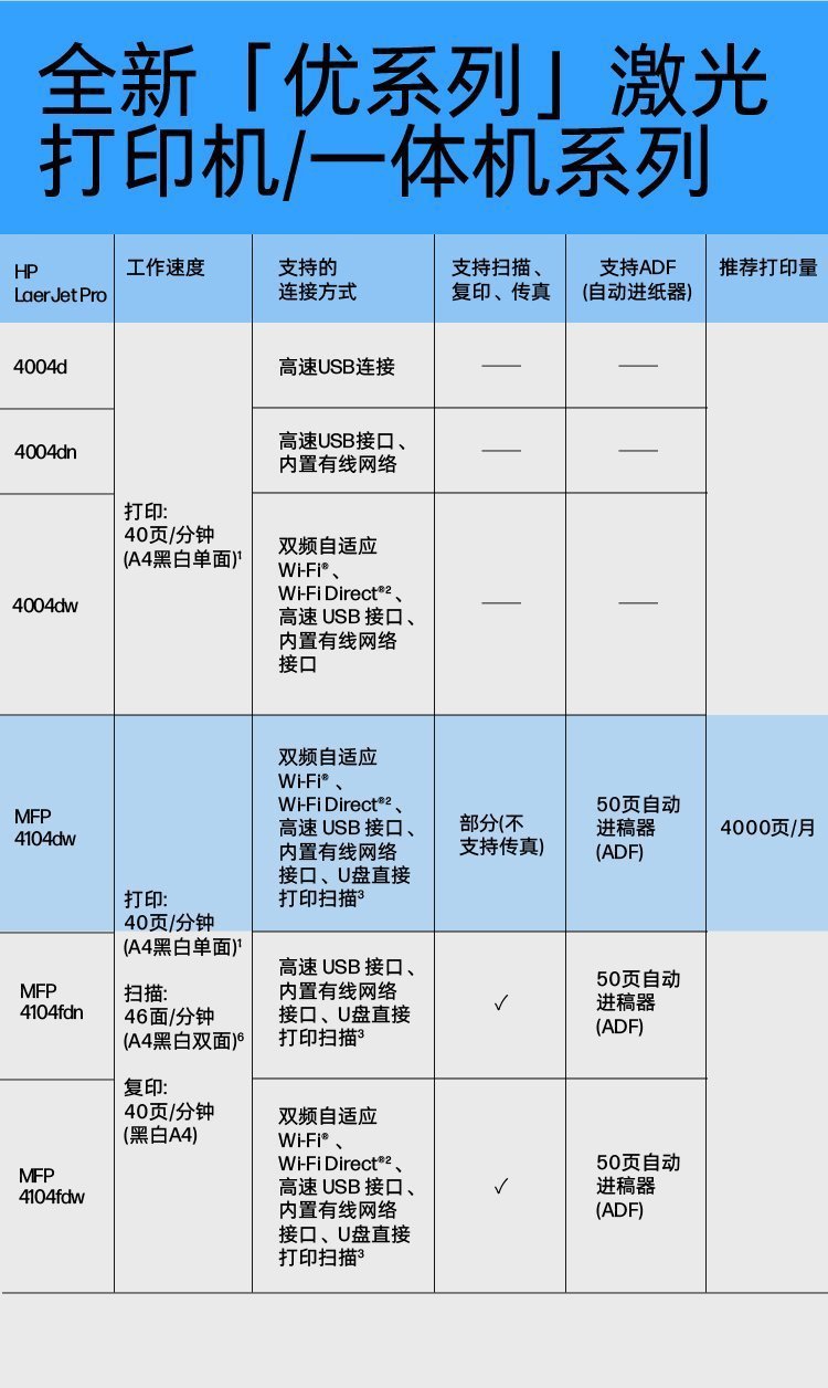 惠普4104dw自动双面扫描复印无线手机办公用A4黑白激光打印一体机