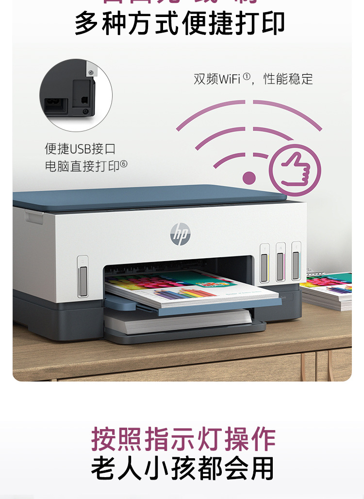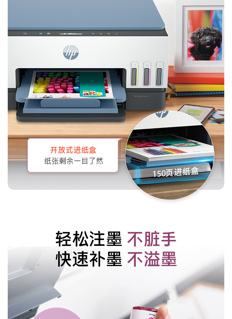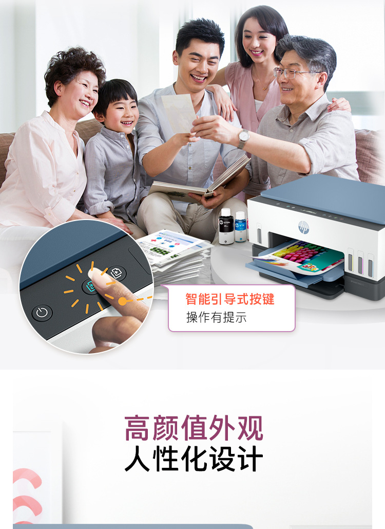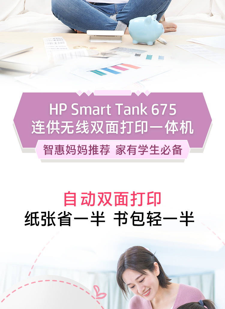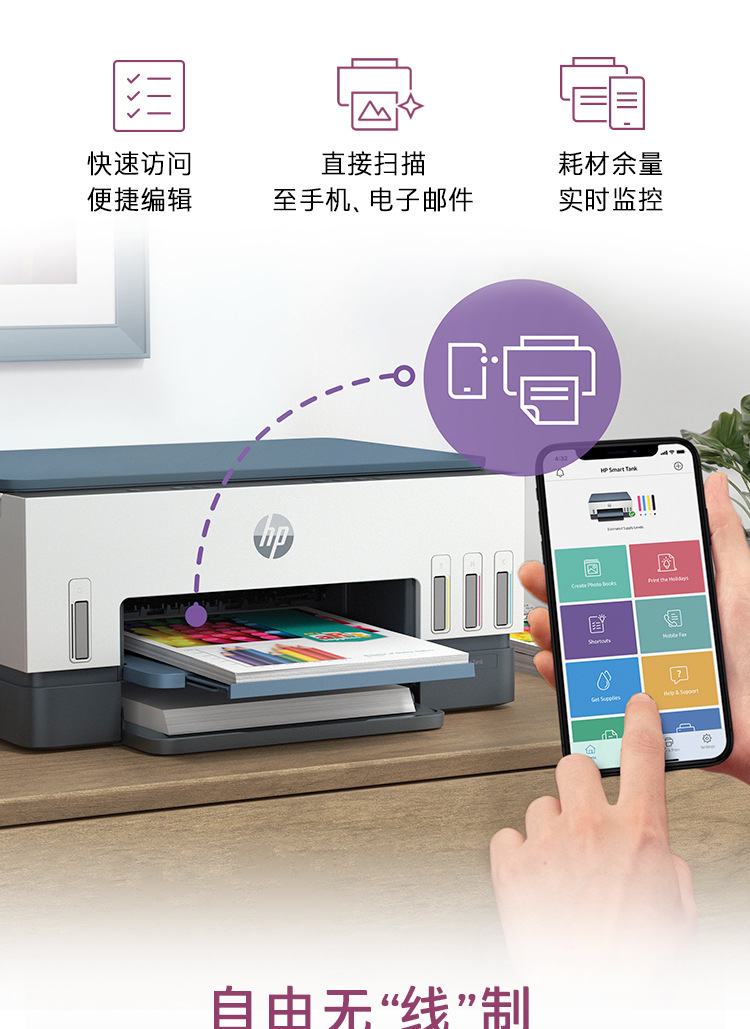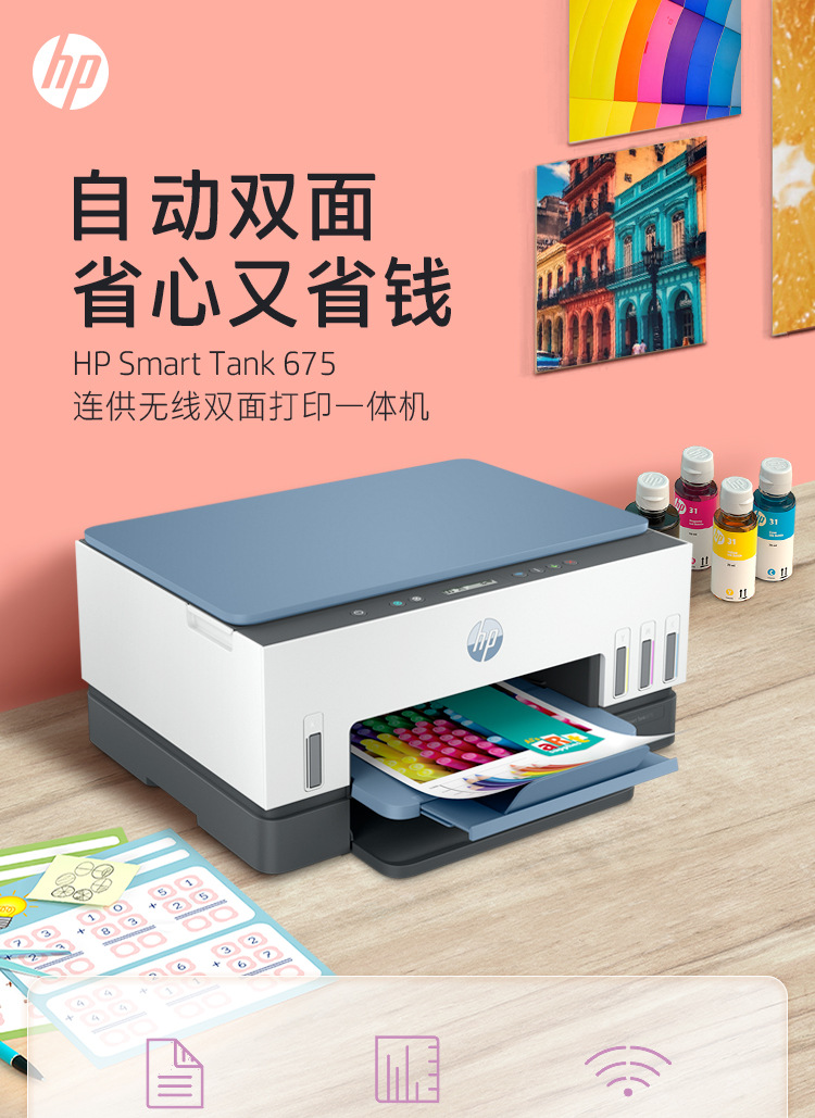 惠普Tank675/Tank755无线双面A4彩色连供办公家用打印复印一体机