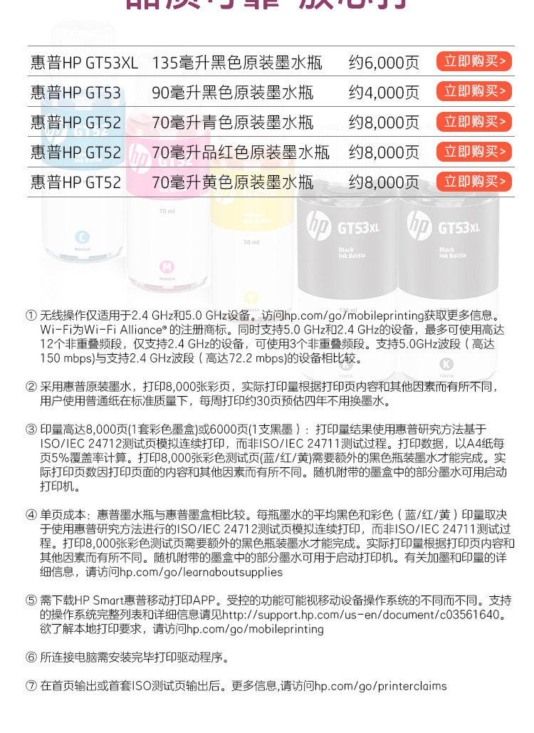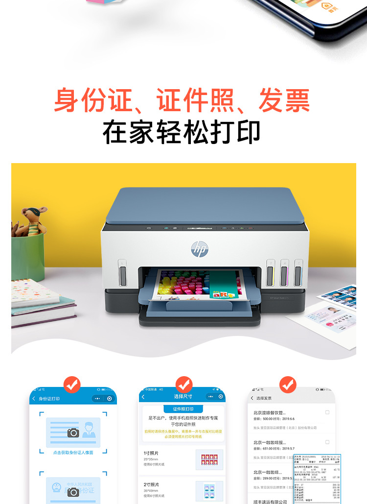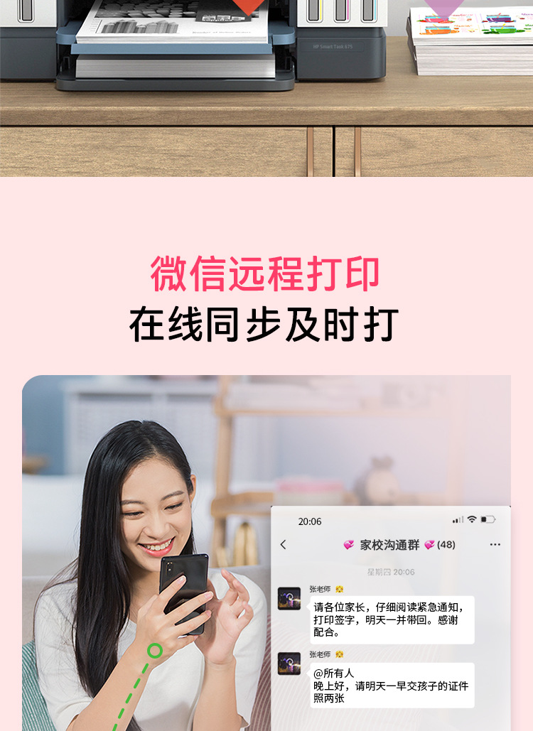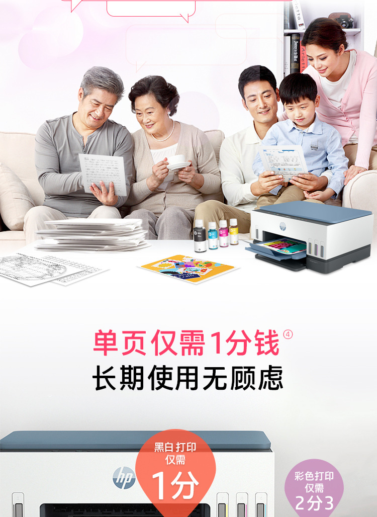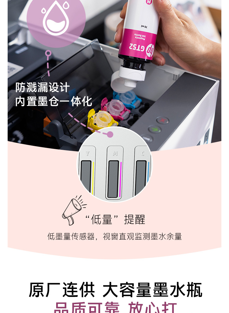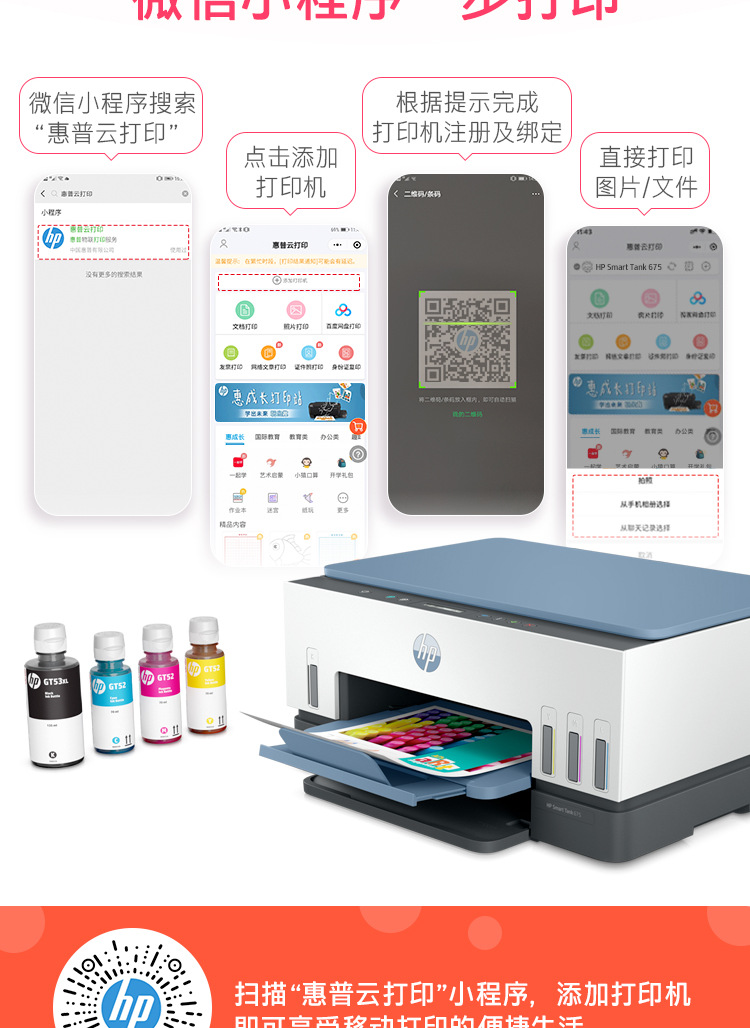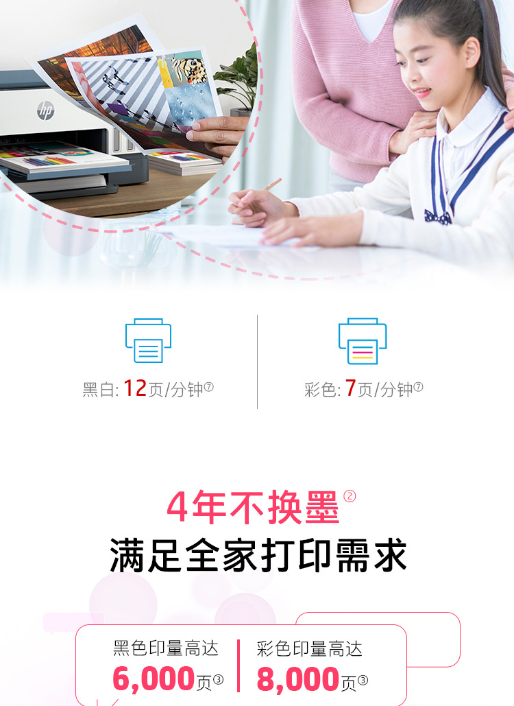 惠普Tank675/Tank755无线双面A4彩色连供办公家用打印复印一体机