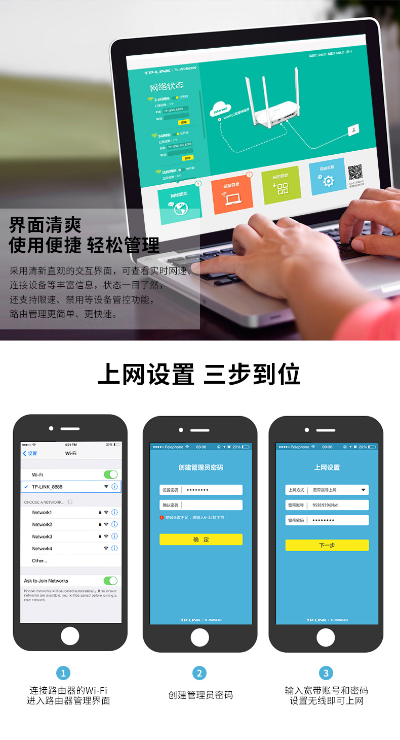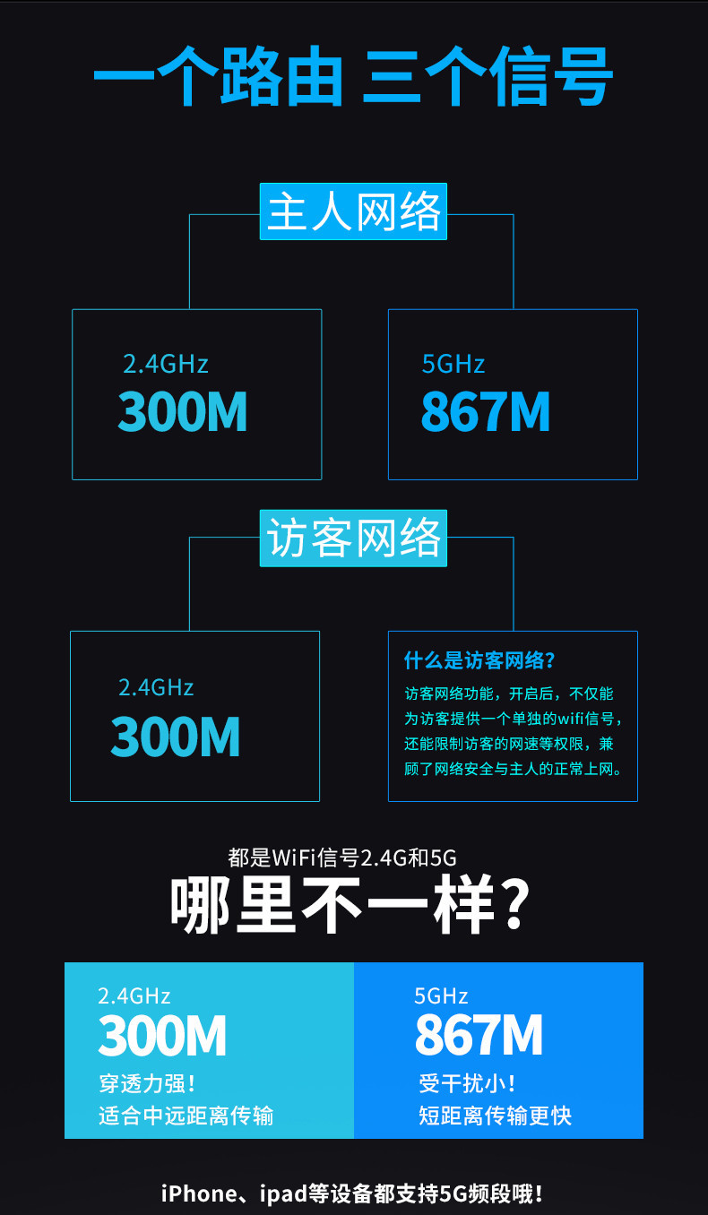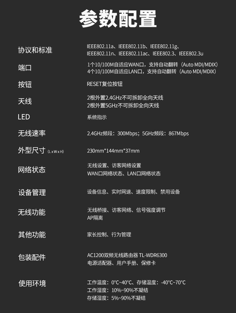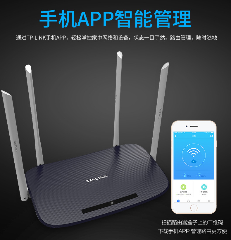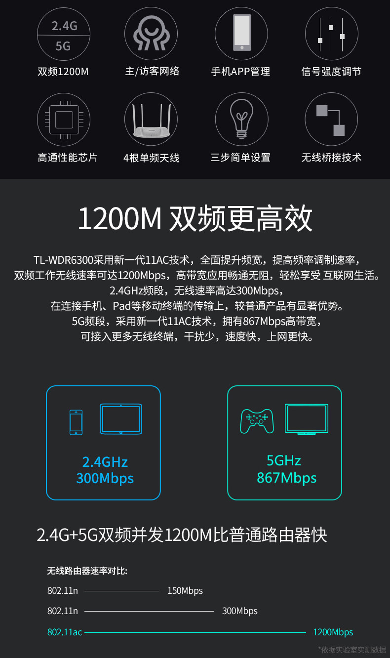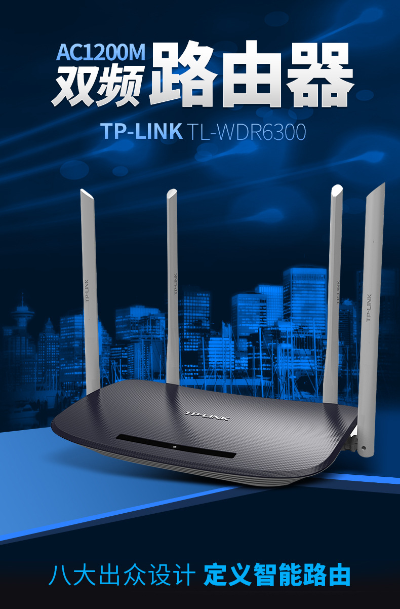TP-LINK双频无线路由器wifi家用5G穿墙王1200M高速光纤TL-WDR6300