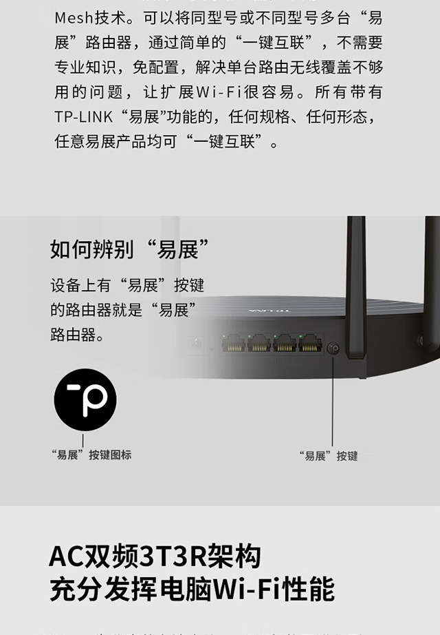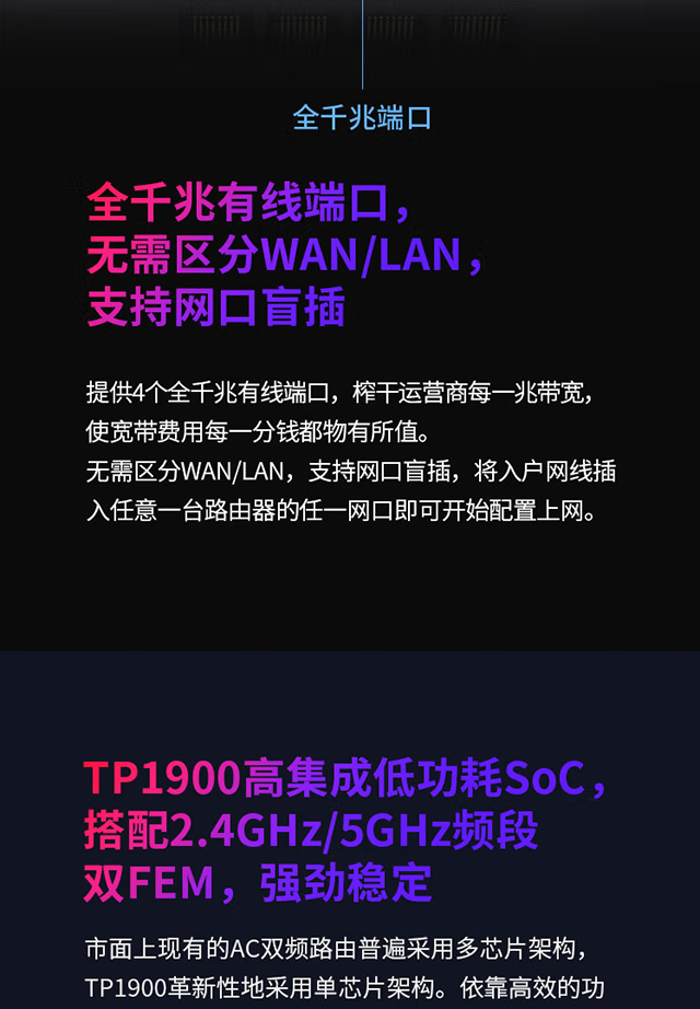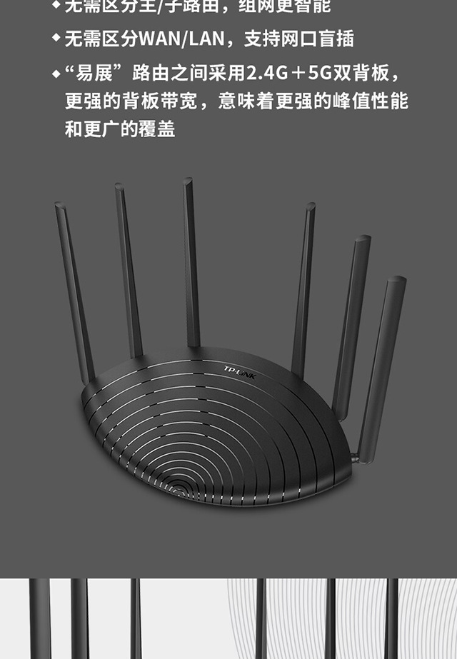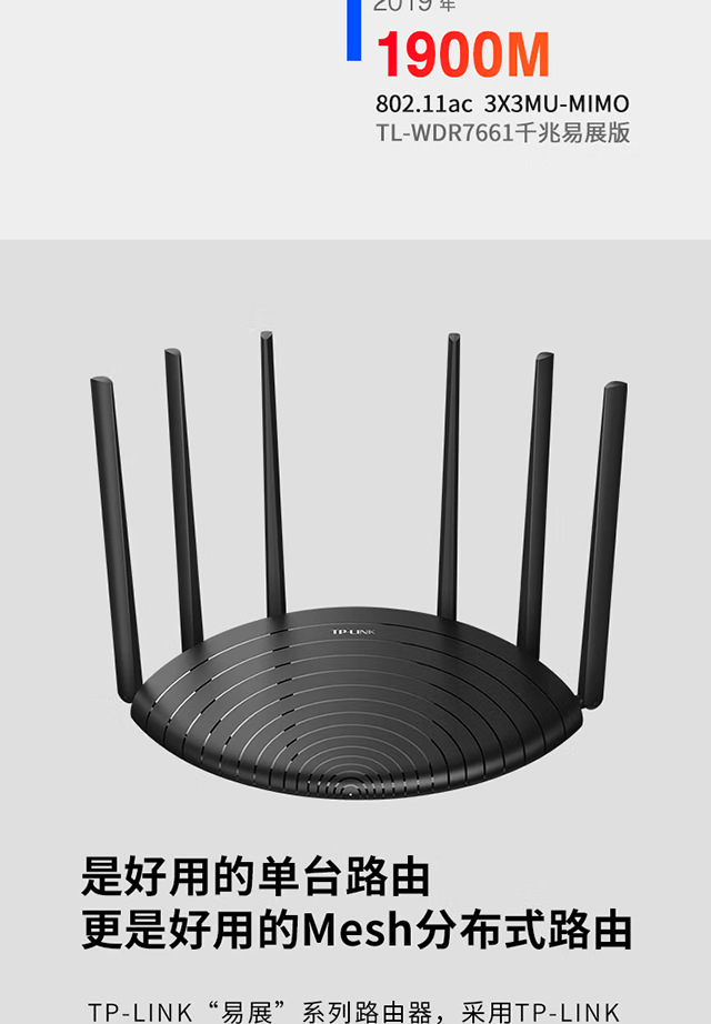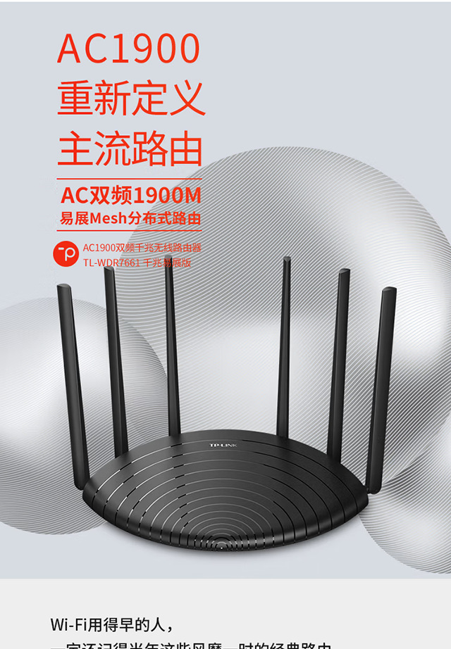 TP-LINK 1900M千兆端口双频无线路由器穿墙 TL-WDR7666千兆易展版
