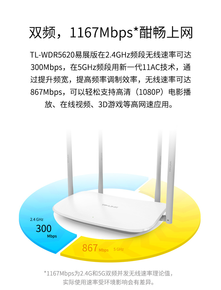 TP-LINK 1200M双频5G无线路由器家用宽带光纤高速wifi穿墙WDR5620