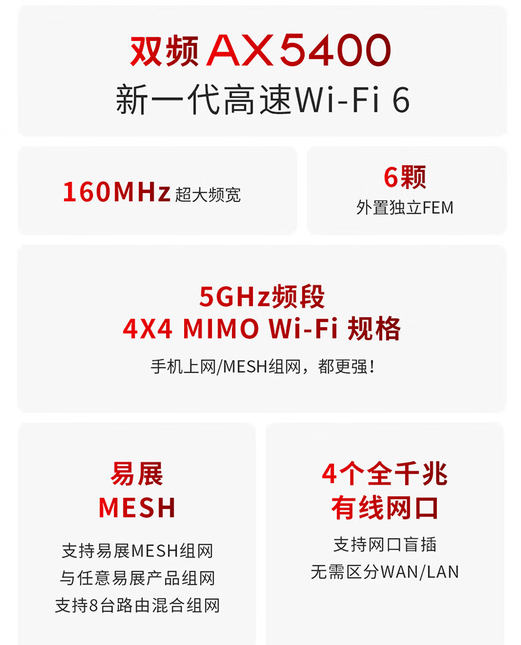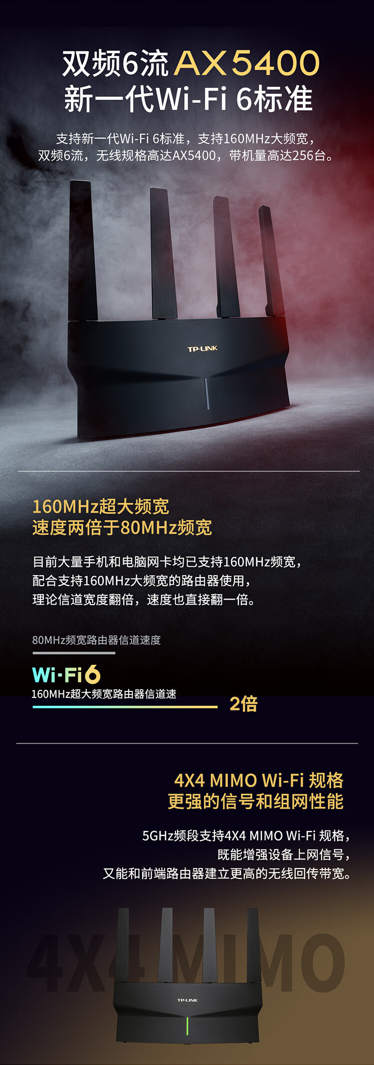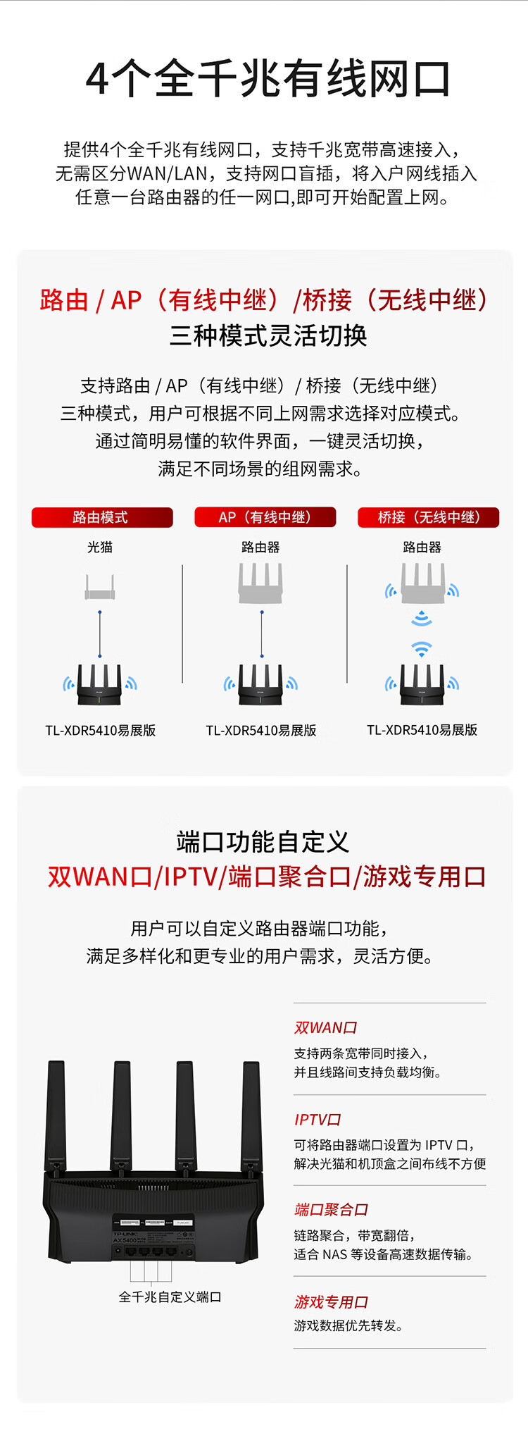 TPLINK千兆端口AX3000无线MESH家用高速WIFI6路由器XDR5410易展版