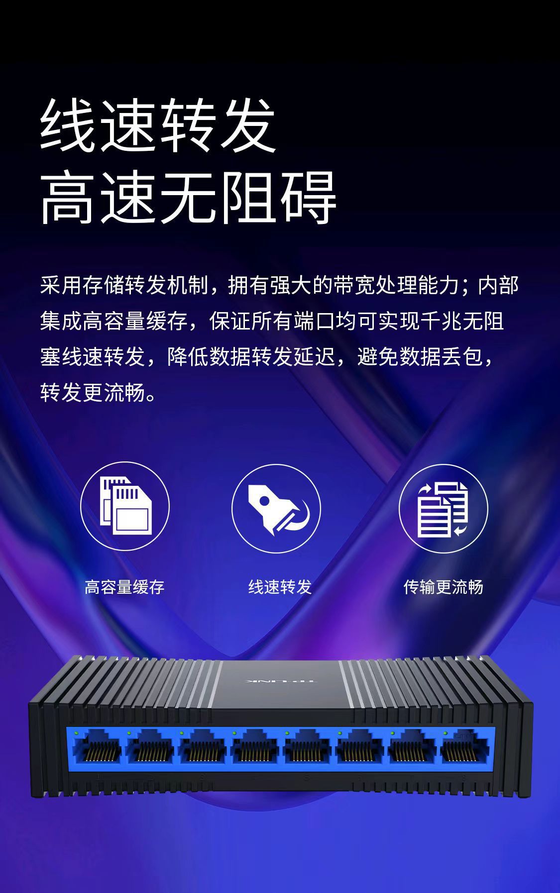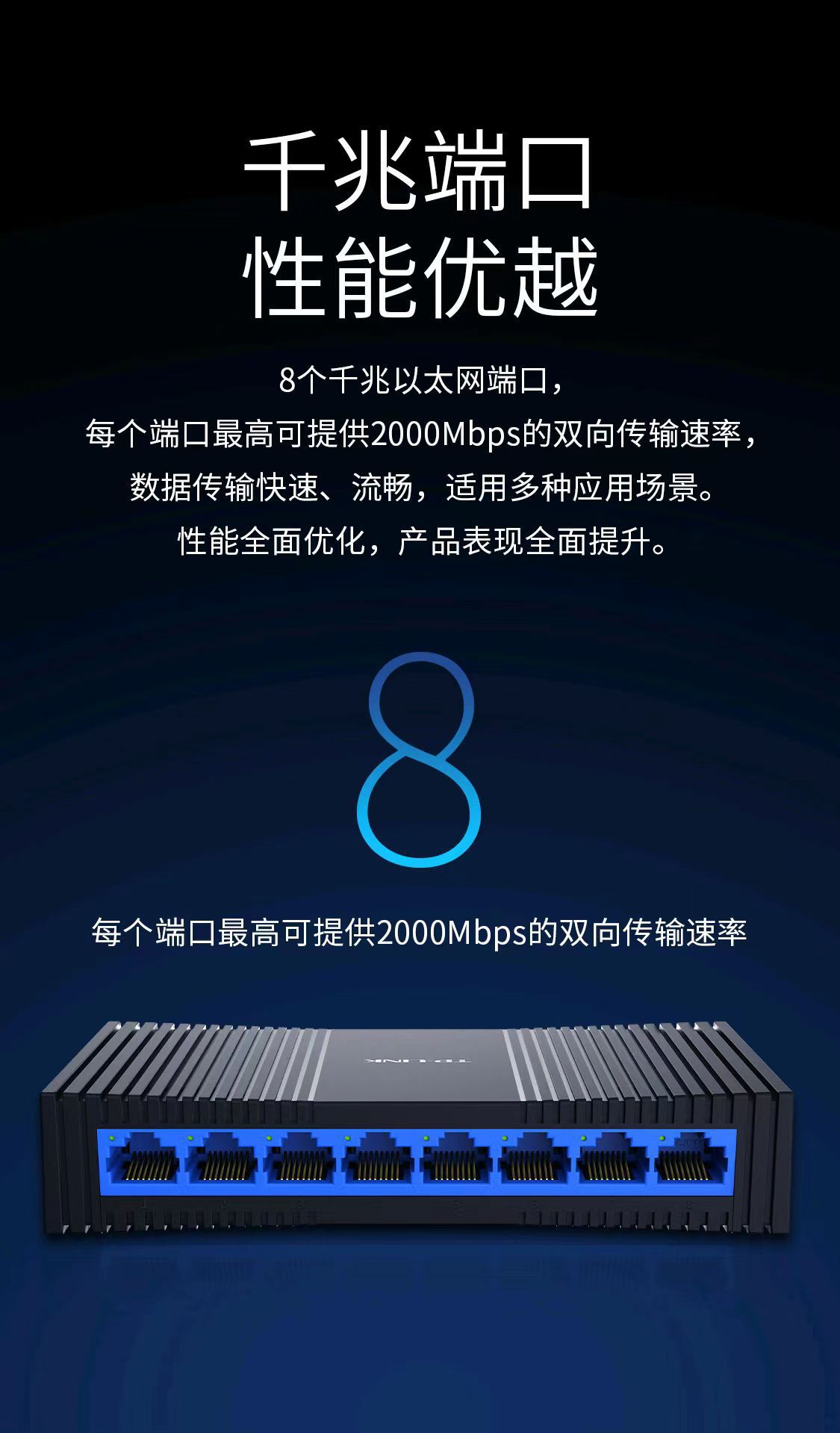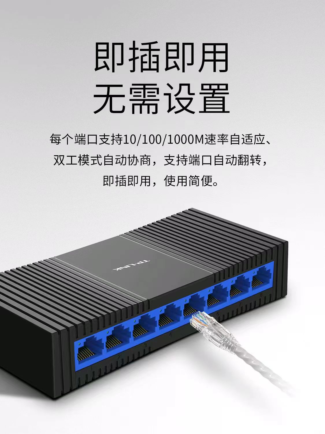 TP-LINK TL-SG1008+ 8口千兆交换机塑壳高速1000M网络监控分线器
