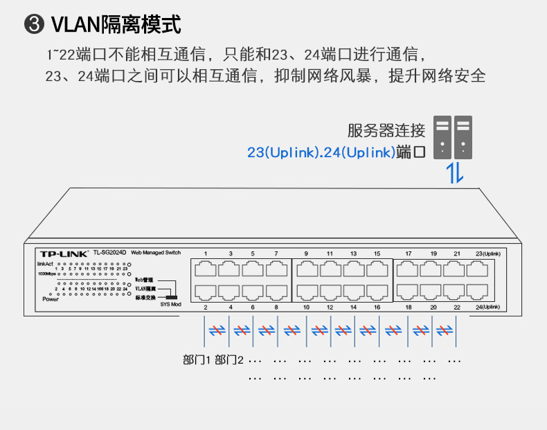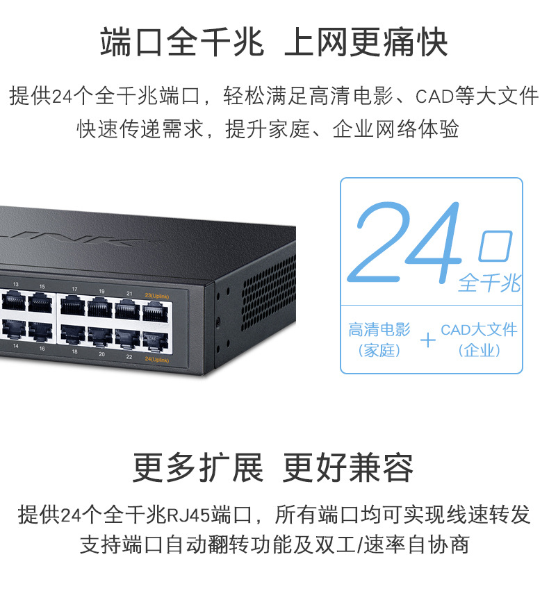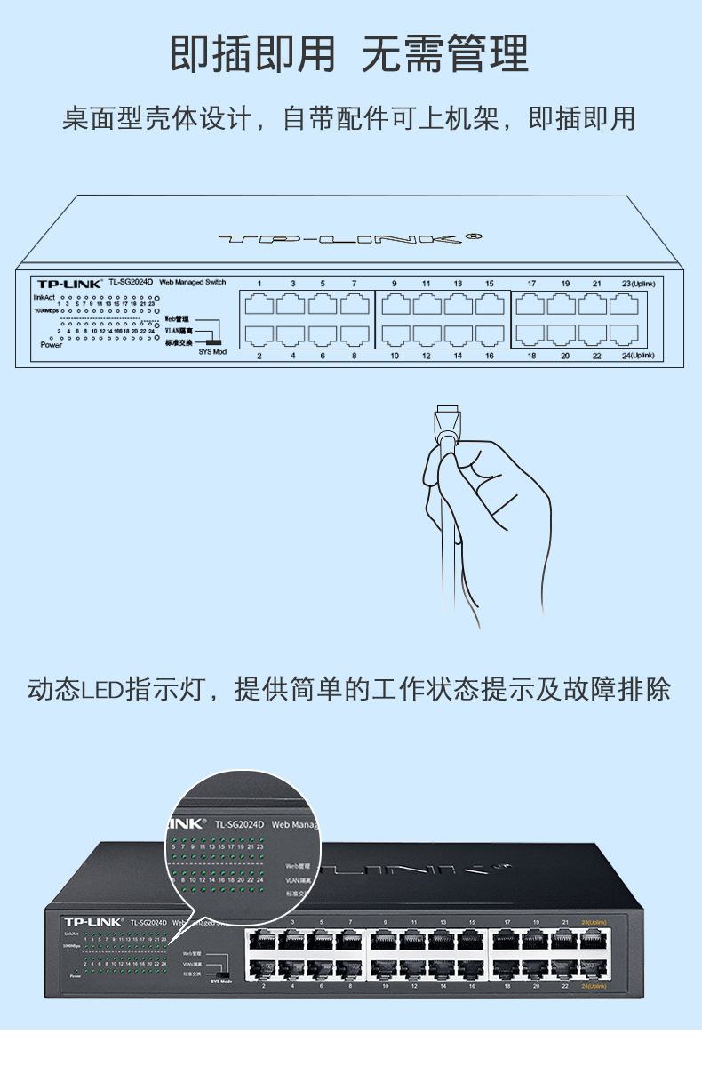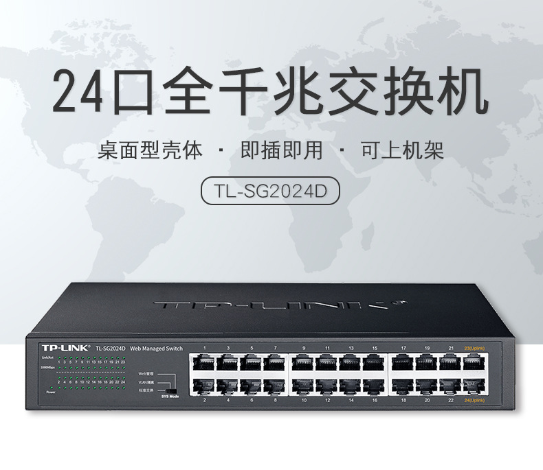 TP-LINK普联 TL-SG2024D 4口全千兆桌面二层核心WEB管理交换机