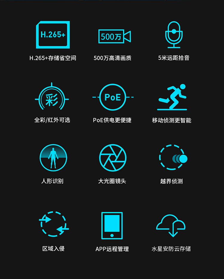 水星300万400万500万高清音频半球网络摄像头POE监控机 MIPC432PW