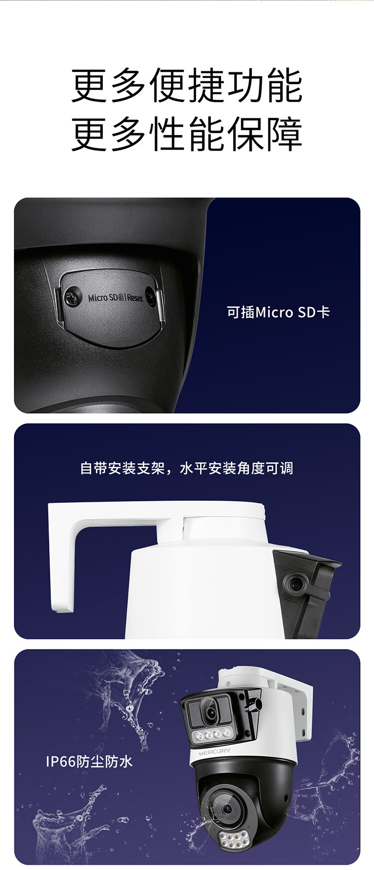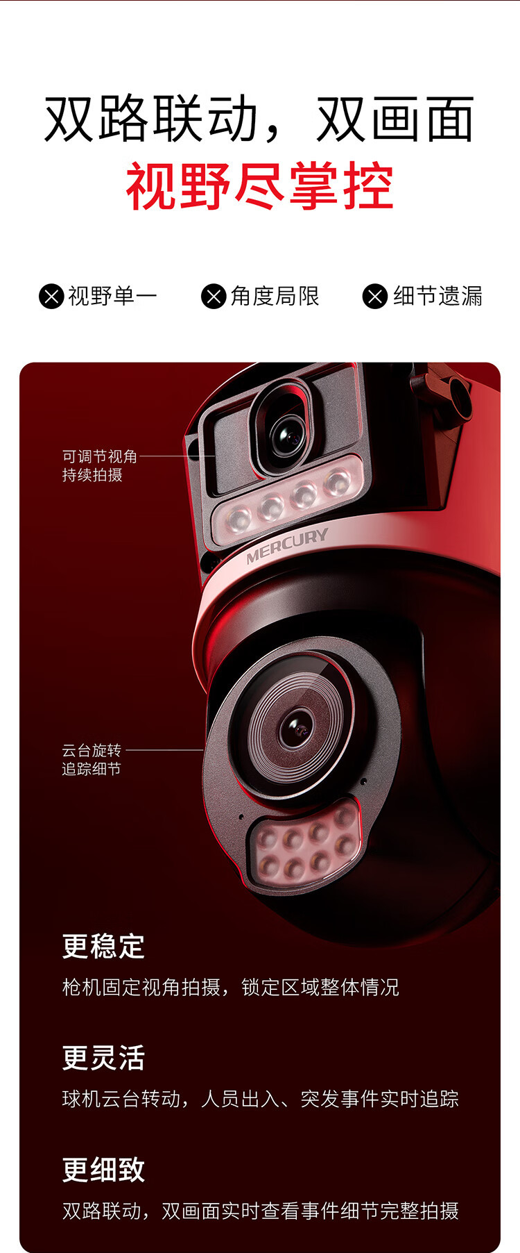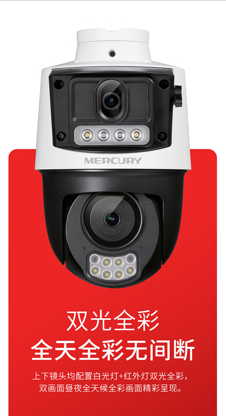 水星 300万400万500万POE室外防水摄像头高清全彩MIPC428PW双摄版