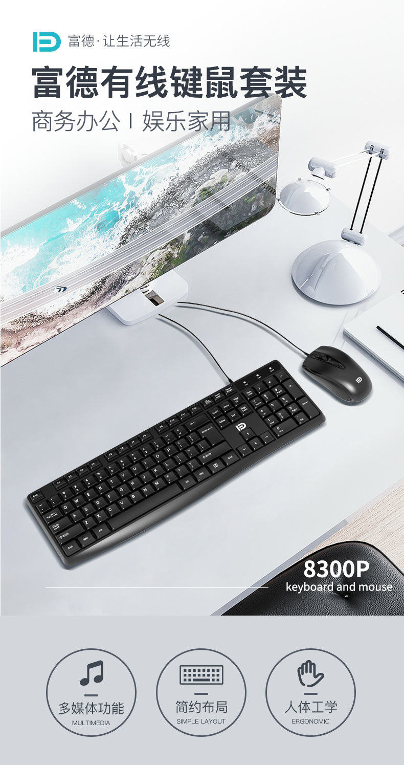 富德8300电脑键盘鼠标套装有线台式笔记本办公打字外接usb家用