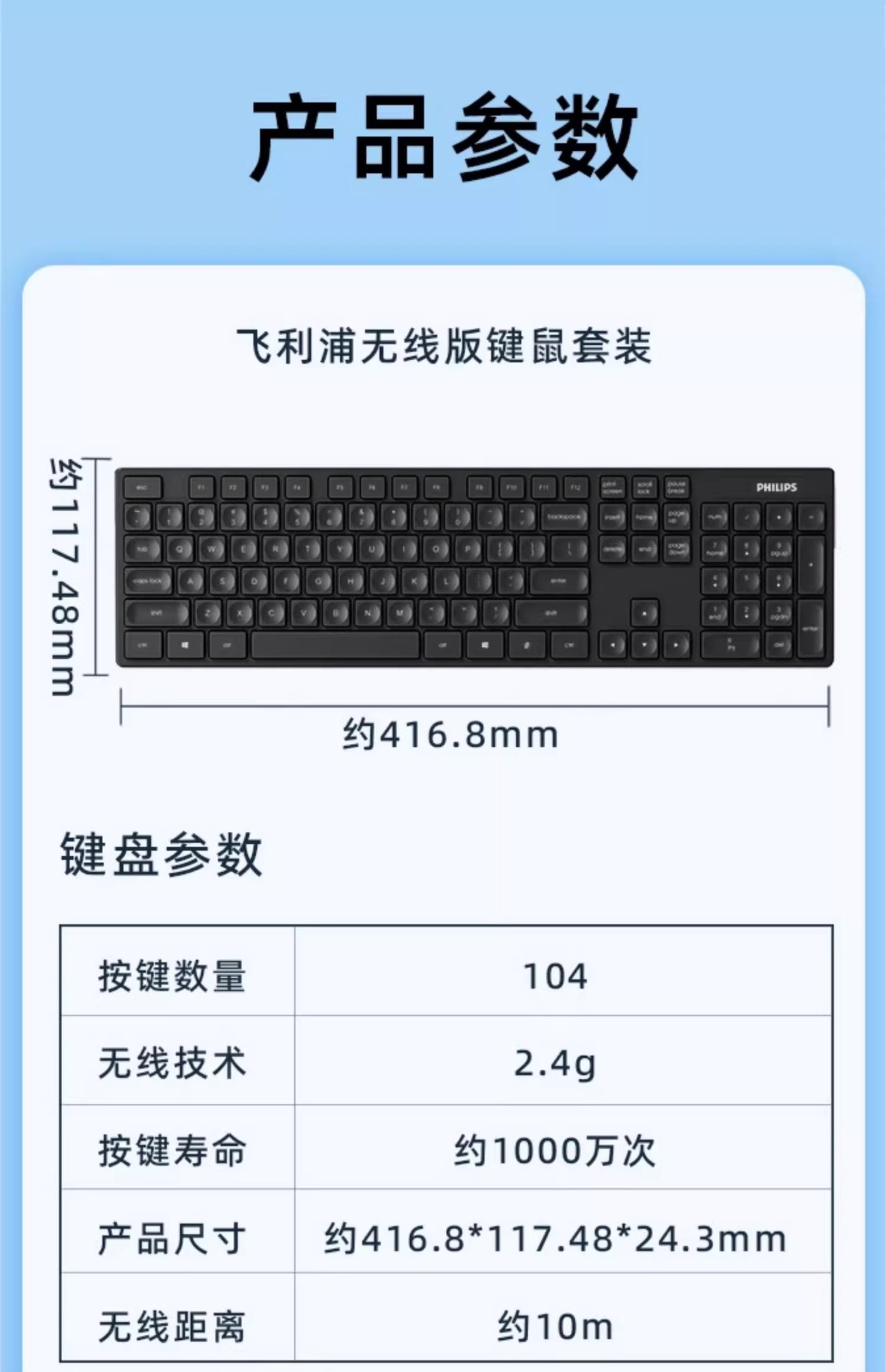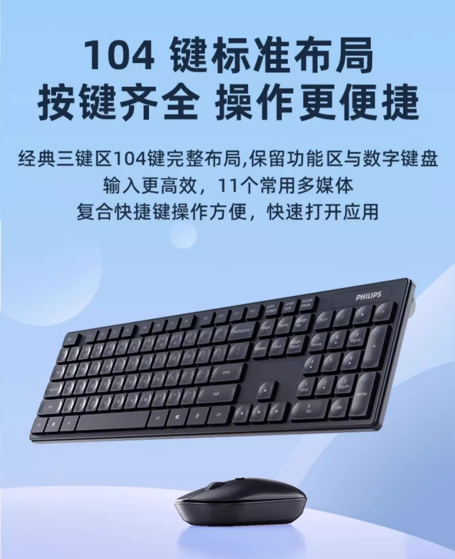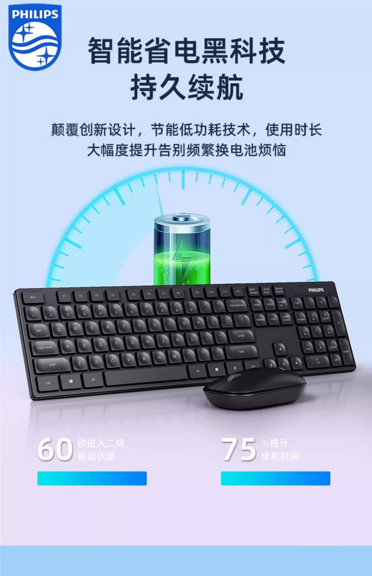 飞利浦spk6103无线蓝牙键盘 麻将键盘套件游戏电竞静音笔记本电脑