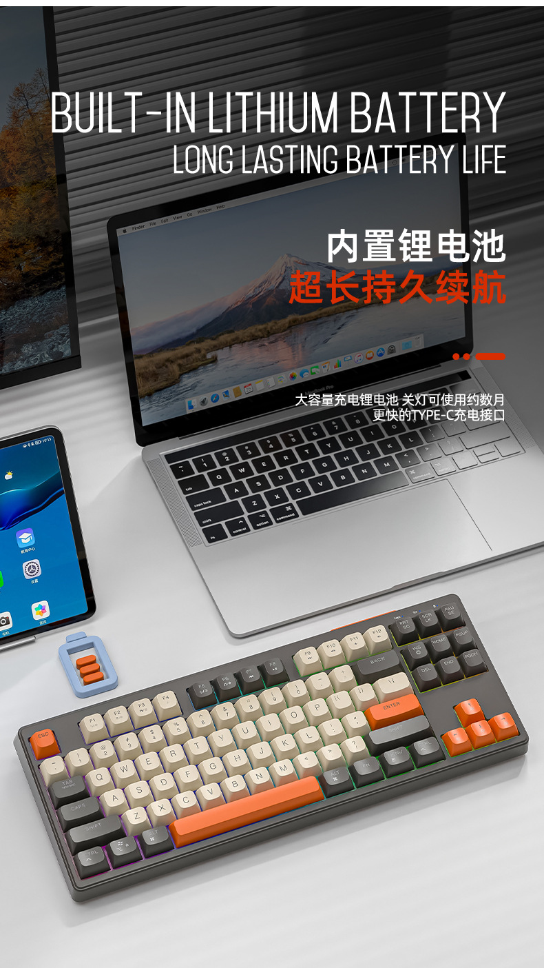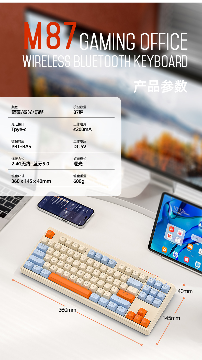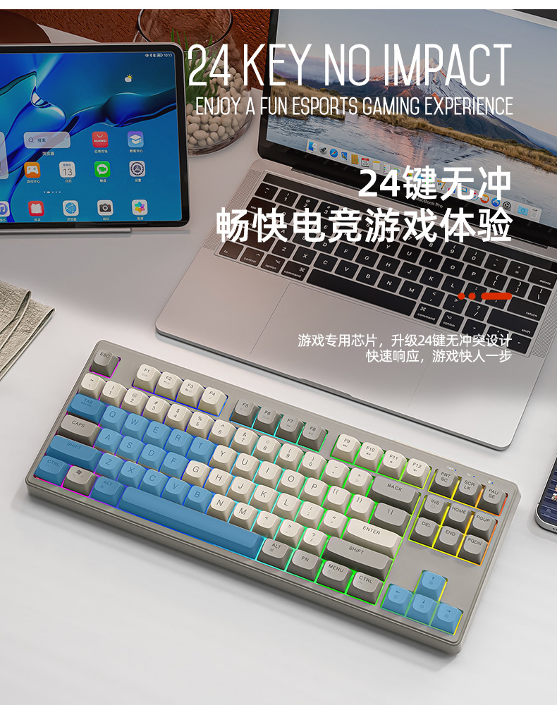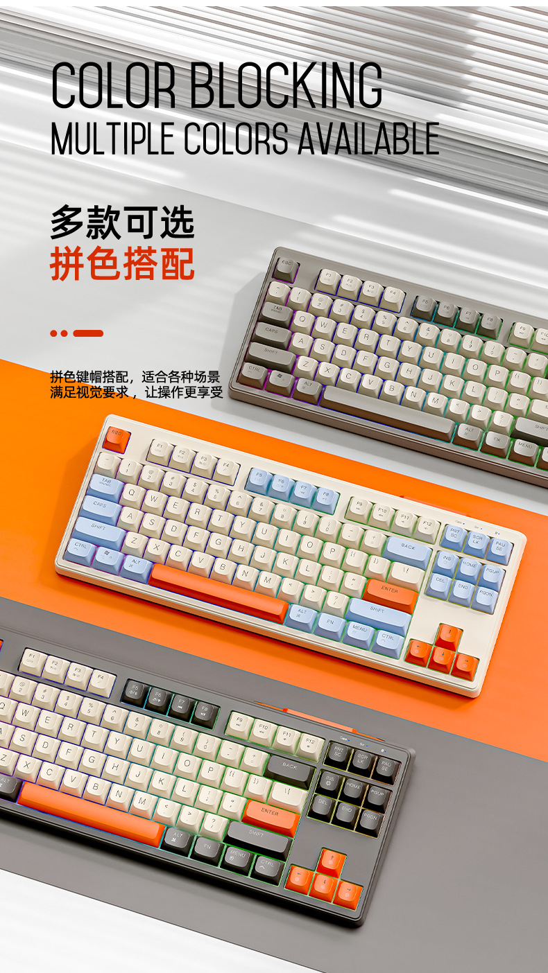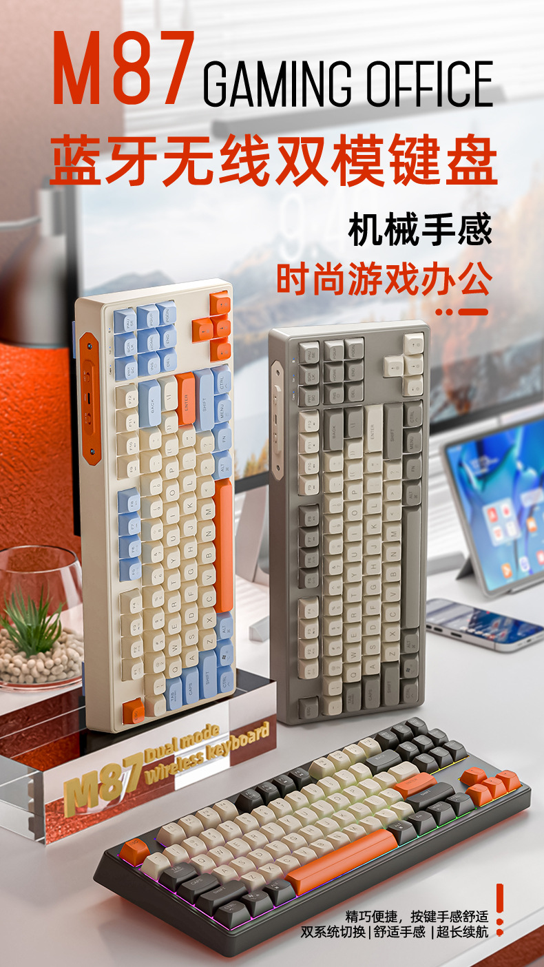 现货 自由狼M87双模蓝牙无线键盘可充电机械手感客制化87键小键盘