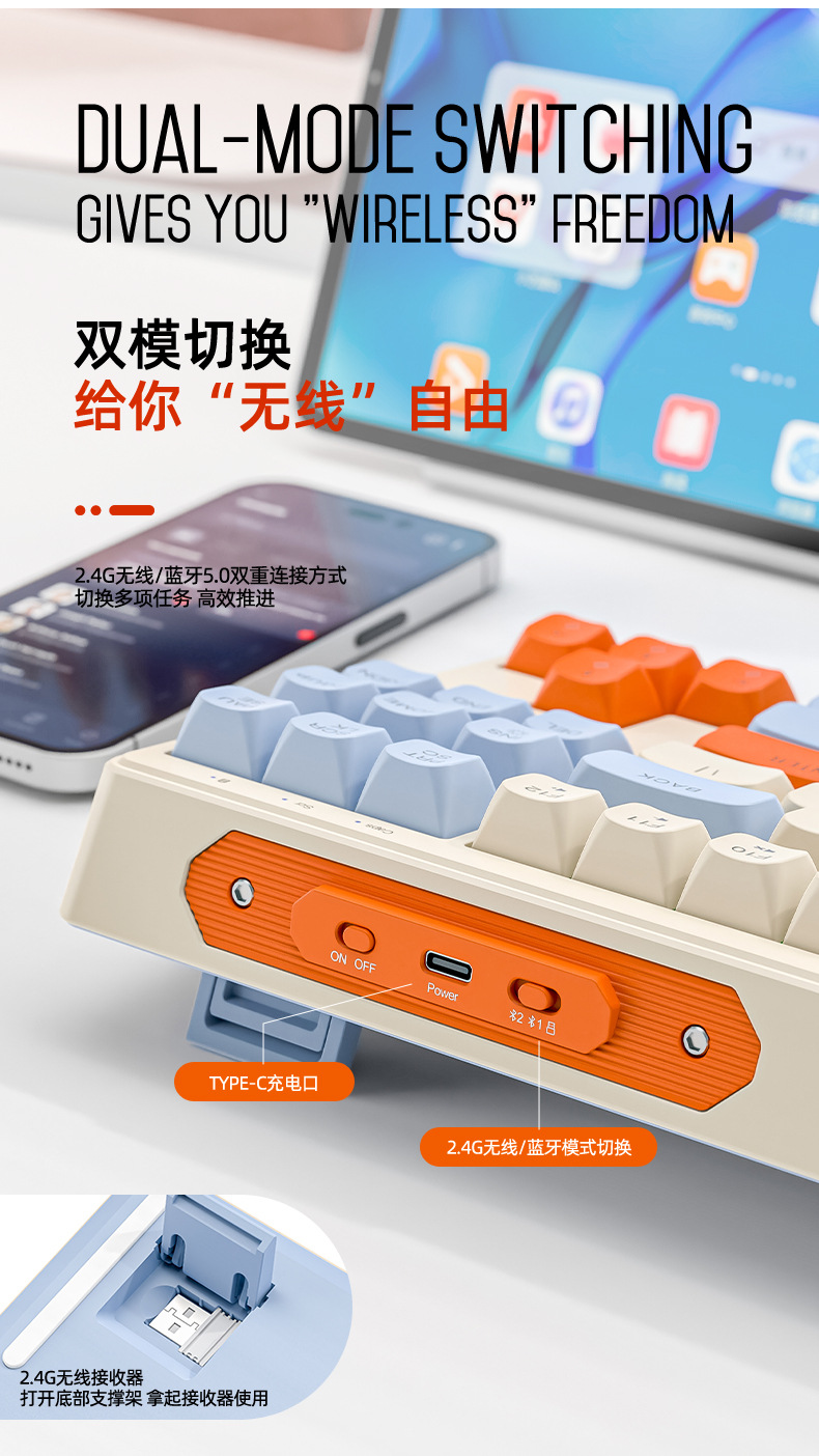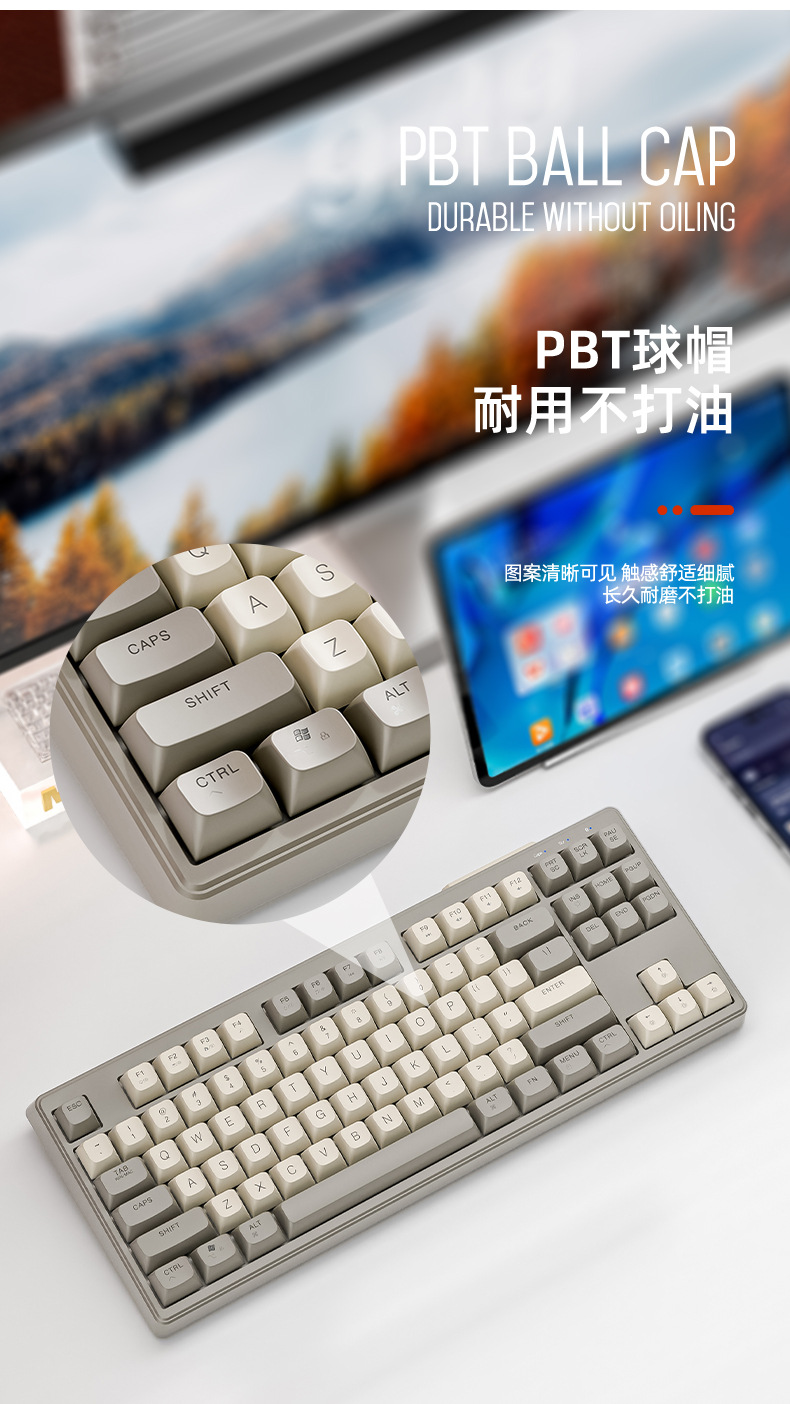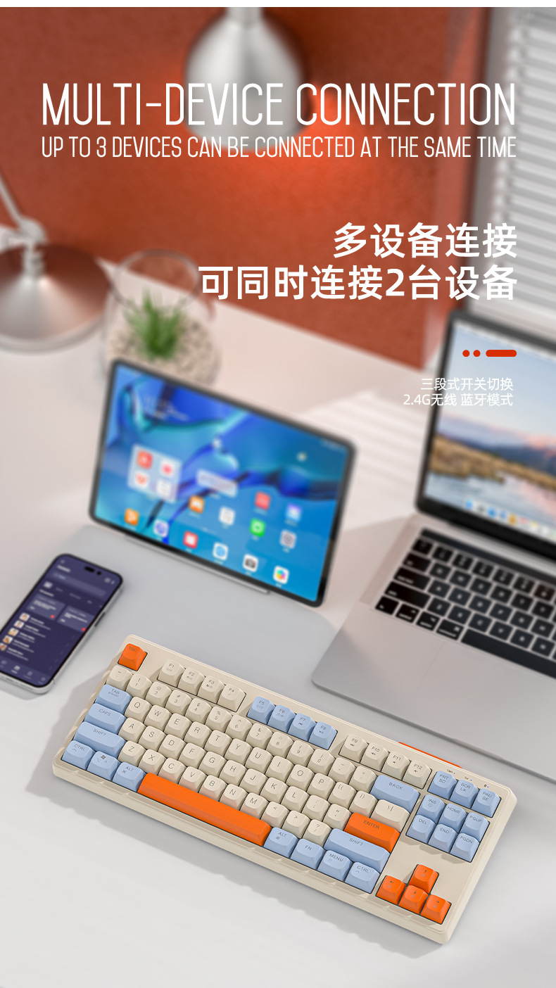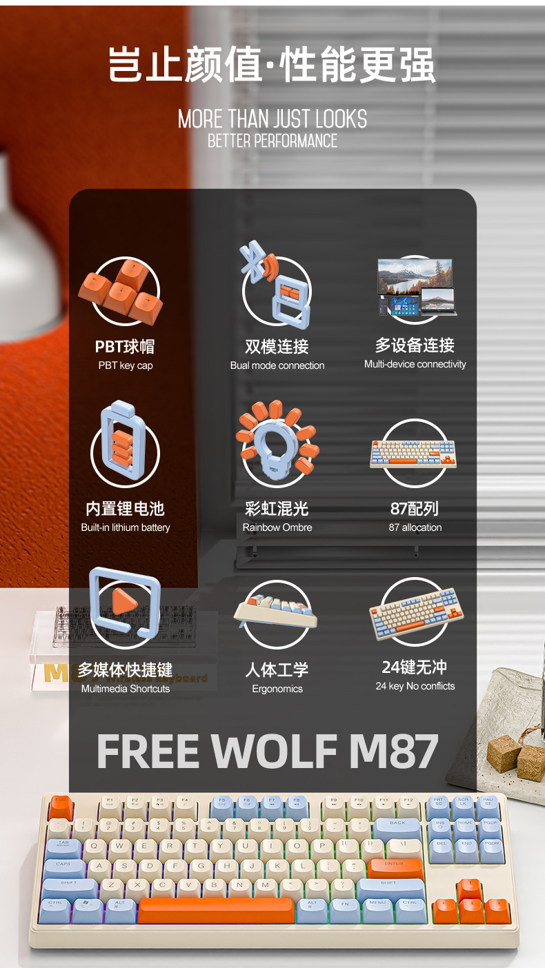 现货 自由狼M87双模蓝牙无线键盘可充电机械手感客制化87键小键盘