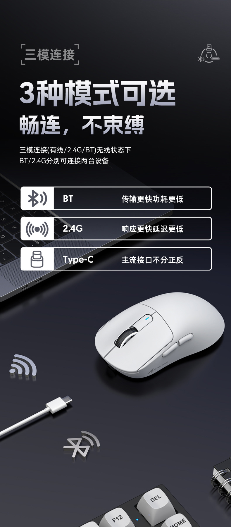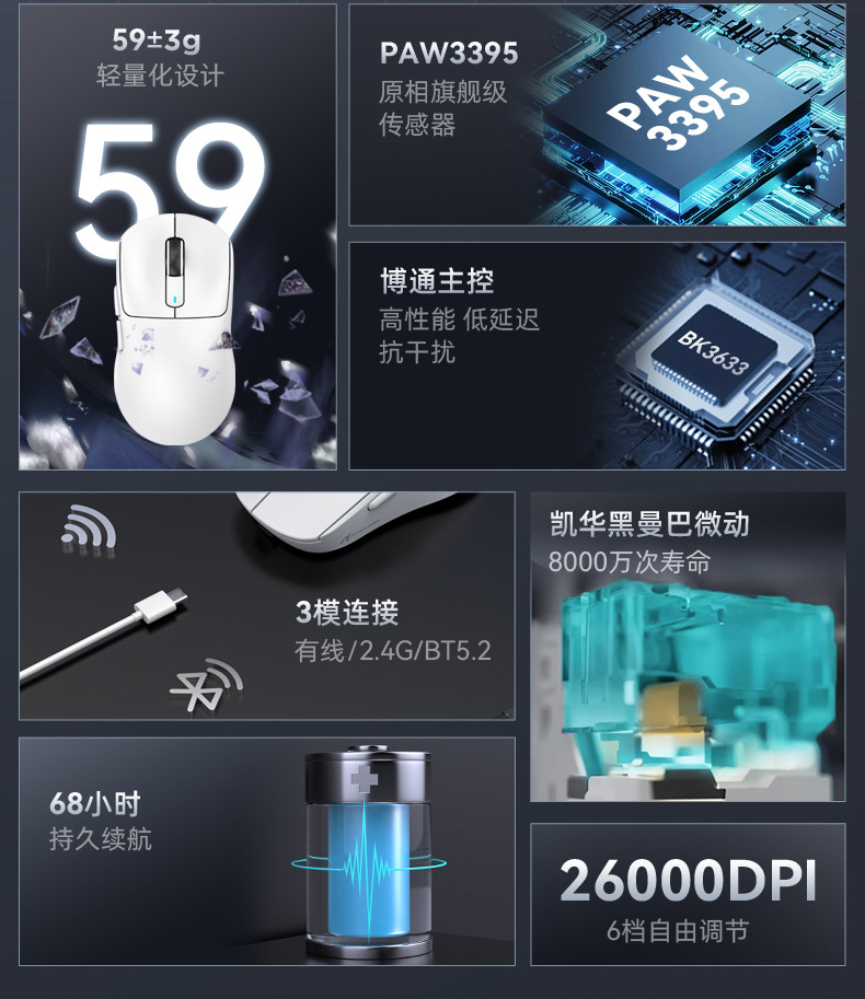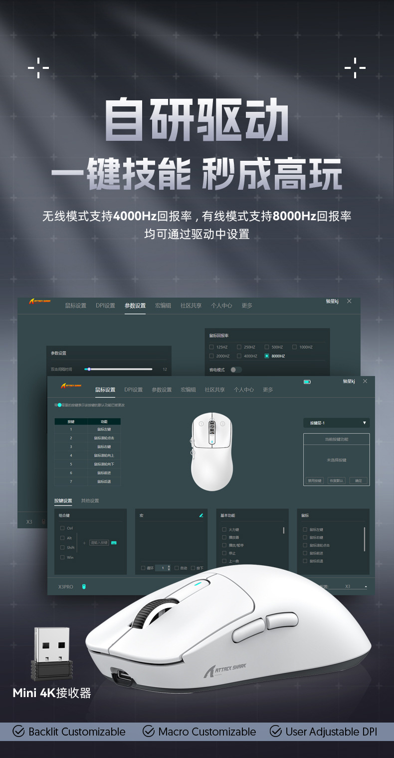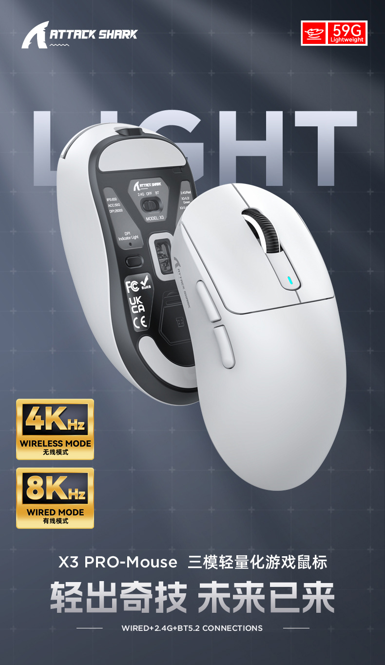 现货Attack Shark/攻击鲨X3pro三模无线鼠标PAW3395 4K 8