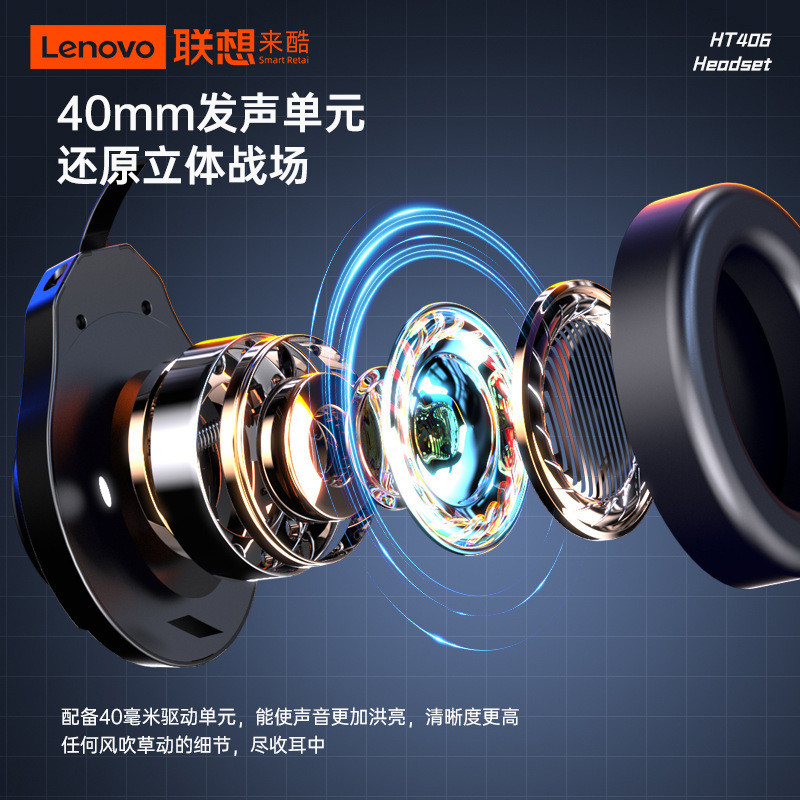 适用联想来酷HT406有线头戴式耳机USB带麦发光台式笔记本办公游戏