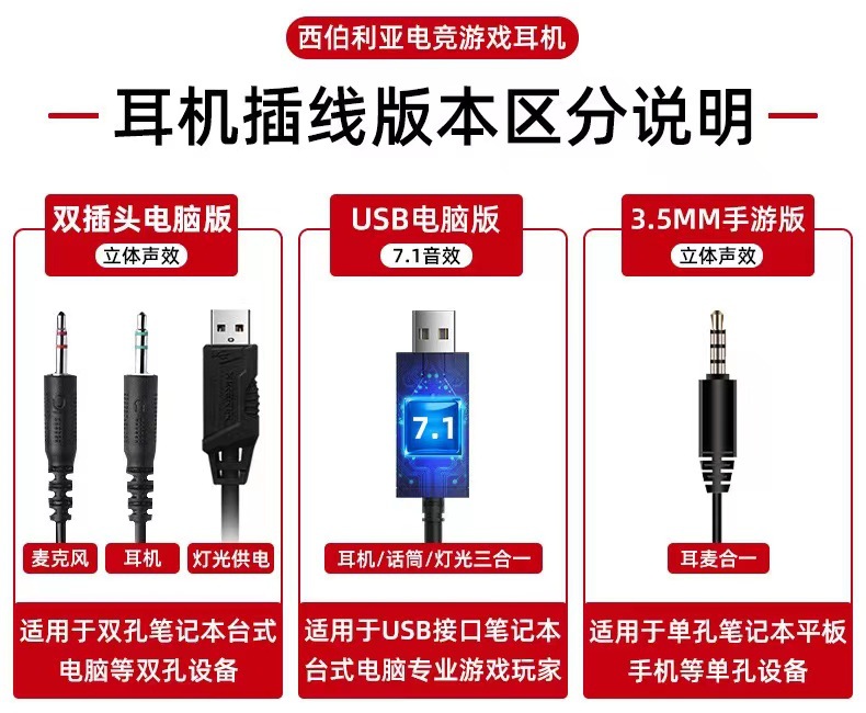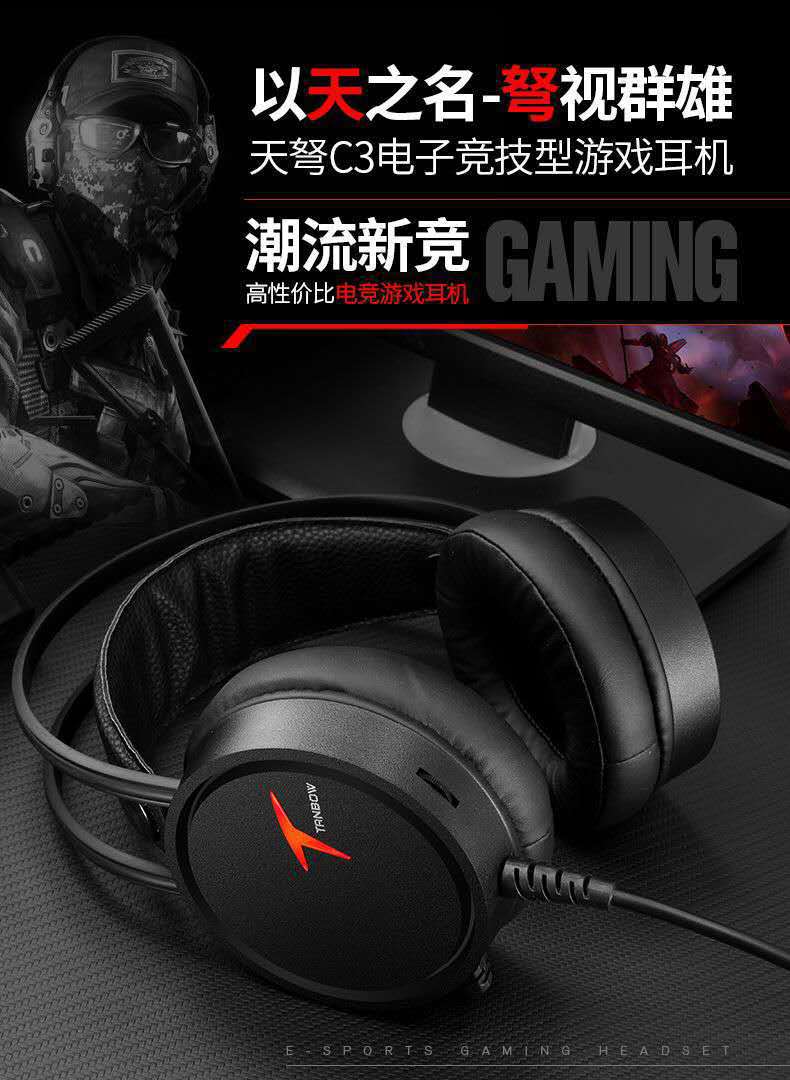 西伯利亚天驽C4电竞游戏头戴式耳机7.1声道重低音电脑usb超低音